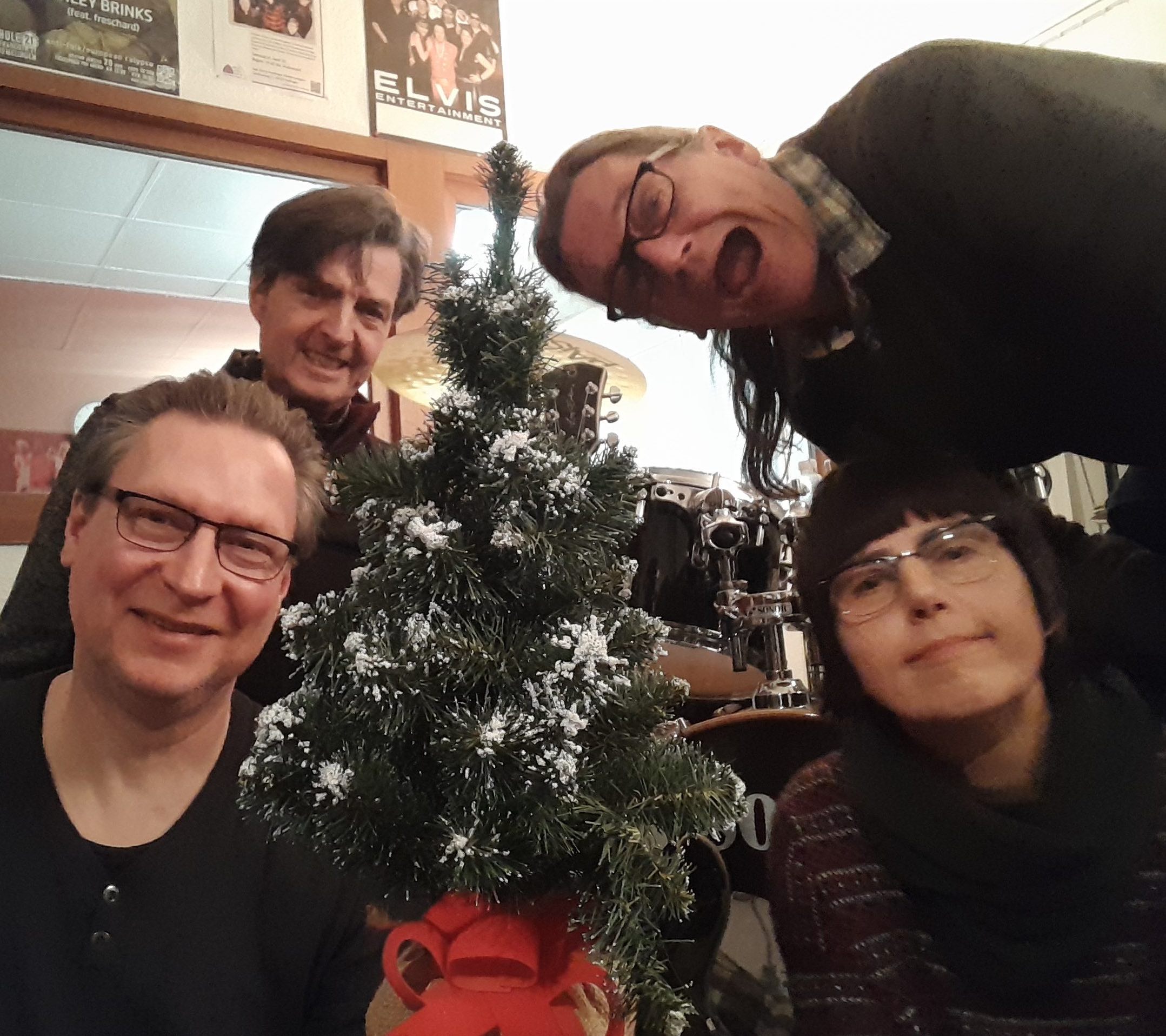 Letzte Bandprobe im Dezember (ohne Jan): Scharf ist hier nur der Weihnachtsbaum.